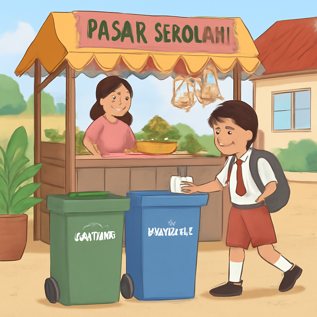8. Bacalah teks berikut! Laporan singkat: Pada kegiatan “Pasar Jumat” di SD Nusantara, siswa menjual makanan tradisional seperti klepon dan getuk. Panitia menyediakan tempat sampah organik dan anorganik. Setelah kegiatan selesai, panitia mencatat bahwa sampah plastik lebih banyak daripada sampah organik. Tindak lanjut yang paling logis untuk mengurangi masalah pada laporan tersebut adalah ....